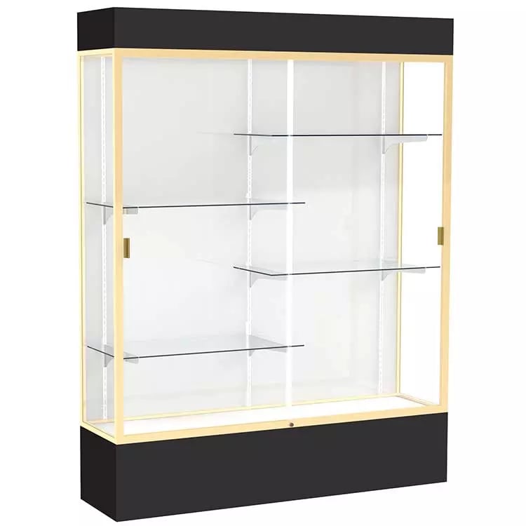 Waddell 3746 Spirit case is a floor display case. Choose from gold or bronze. 72"L X 72"H X 16"D.